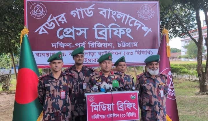 এদিকে বৃহস্পতিবার দুপুরে খাগড়াছড়ির মাটিরাঙার যামিনী পাড়া ২৩ বিজিবি ব্যাটালিয়ন সদর দপ্তরে এক প্রেস ব্রিফিংয়ের আয়োজন করে। ব্রিফিংয়ে যামিনি পাড়া ব্যাটালিয়নের অধিনায়ক লে. কর্নেল খালেদ ইবনে হোসেন উপস্থিত ছিলেন তিনি বলেন, বাংলাদেশ ভারতের সাথে চট্টগ্রাম দক্ষিণ-পূর্ব রিজিয়ন এলাকার ৫৪০ কিলোমিটার সীমান্তে নিরাপত্তা, চোরাচালান দমন ও শান্তি শৃঙ্খলা রক্ষায় দায়িত্ব পালন করছে। রিজিয়নের অধীনে থাকা ১৩টি ব্যাটালিয়ন পার্বত্য চট্টগ্রাম অঞ্চলের দুর্গম সীমান্ত এলাকায় অভিযান, নজরদারি ও টহল কার্যক্রম জোরদার রেখেছে। অভিযানে চলতি বছরের জানুয়ারী থেকে সেপ্টেম্বর পর্যন্ত ৯ মাসে ১৯ কোটি ৫৫ লাখ টাকার অবৈধ চোরাচালান মালামাল জব্দ করা হয়েছে।